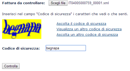 Dopo il controllo verrà visualizzato l'esito della verifica del file.